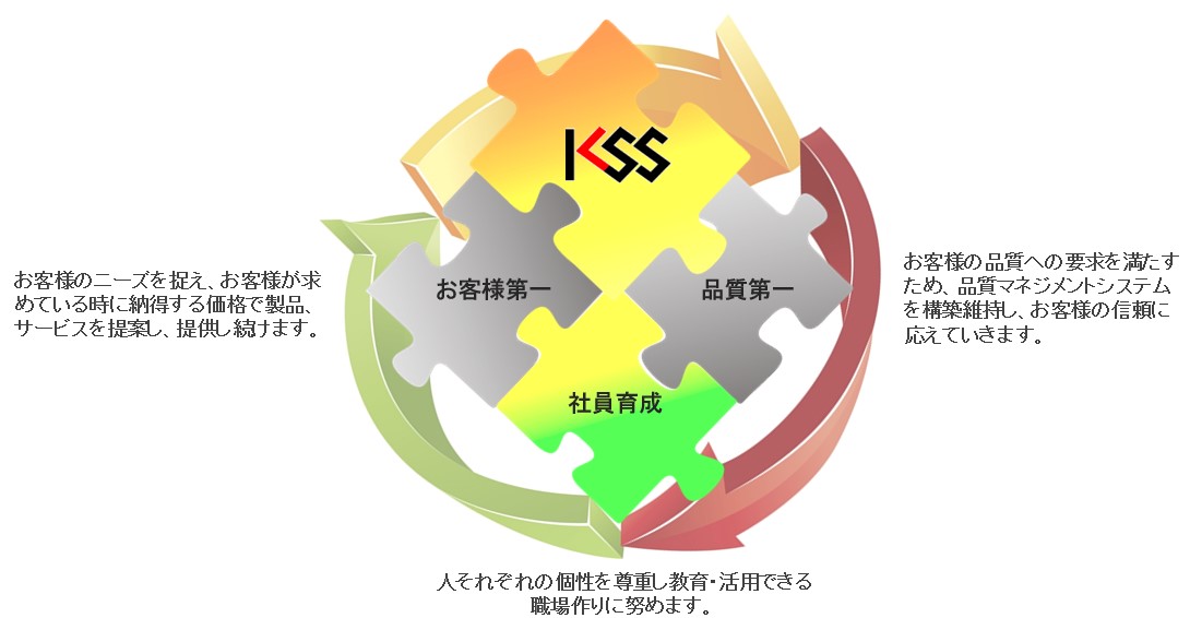 私たちの目指すところは、製造会社として、物作りの追求及び充実を図り、市場の様々なニーズに応え、お客様に満足して頂ける製品?サービスを提供し、信頼され愛される企業であり続けることである。