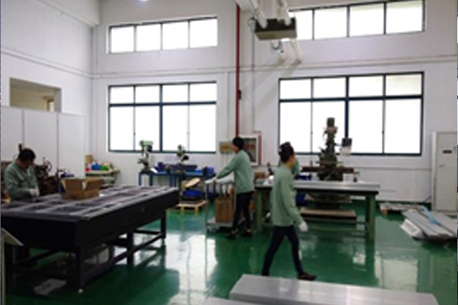 1楼 :铝框装配现场(左侧区域) | 1楼 :检查、出货前部品放置场所(右侧区域) |